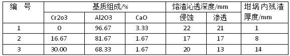 (表二)鉻剛玉質澆注料的基質組成和抗渣性