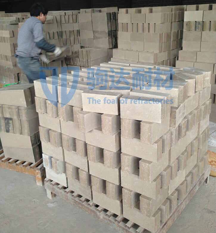 高鋁磚坯裝窯(或裝窯車)一般多采用平裝。為避免燒成時產生黑心,亦可采用側裝。用倒焰窯燒成,需要用高鋁磚搭架子。如果同隧道窯燒成,窯車臺面可用高鋁熟料砂墊平,為使磚垛穩固,在一定高度要平拉一層墊磚。裝磚高度一般為650~1000mm。其中III等高鋁磚裝磚可偏高,I、II等磚可偏低。