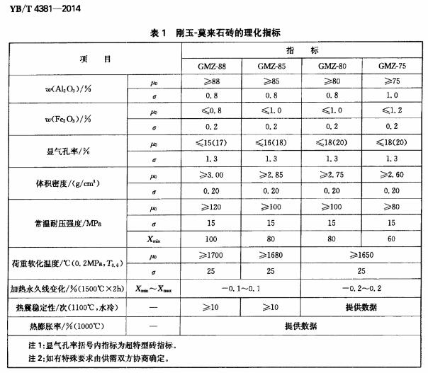 在冶標(biāo)(YB/T 4381-2014)中規(guī)定了剛玉莫來石磚的分類、形狀和尺寸,技術(shù)要求,和試驗(yàn)方法,產(chǎn)品驗(yàn)收等項(xiàng)目。
