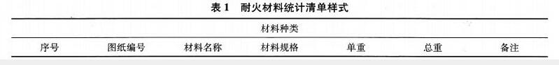 設計方在完成熔窯設計之后要進行材料統計清單的制作。材料統計清單直接影響到材料的訂貨、包裝、倉儲以及出庫,是建設方用于熔窯材料招標和材料供應方用于材料生產、包裝的依據。耐火材料統計清單樣式應當包含材料種類、圖紙編號、材料名稱、材料規格、單重、總重等類別(如表1),這樣的清單能夠較為方便地讓建設方、材料供應方、施工方根據圖紙中的尺寸合適材料的規格、單重、總重是否正確。