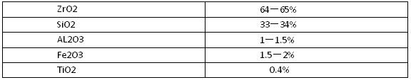 鋯英砂搗打料是以礦產鋯英砂作骨料的粉料,以磷酸鋁溶液作膠結劑的一種不定形的耐火材料。應當指出,搗打料的荷重軟化溫度是隨鋯英砂中ZrO2含量的增加而顯著提高。為此,選用鋯英砂精礦做骨料和粉料。其化學做成如下: