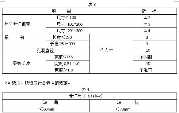 2.3制品的尺寸允許偏差及外形應符合表3的規定。