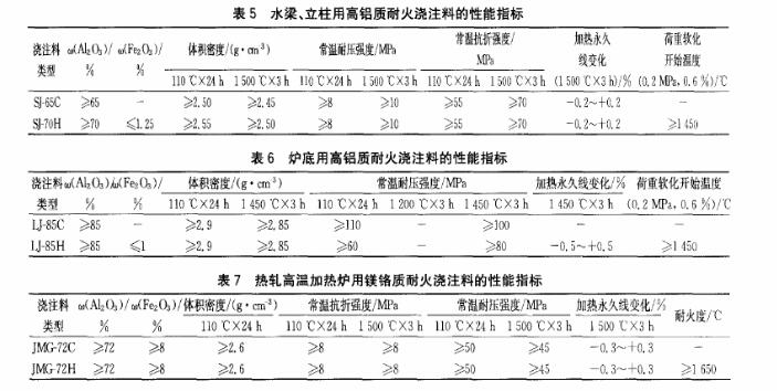 2.1 熱軋高溫加熱爐用高鋁質耐火澆注料標準