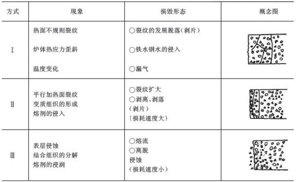 局部的高溶解度、高蒸氣壓力或低粘性相的存在或生成;由磨損造成的損耗;粘土質(zhì)耐火磚在使用過程中的損毀方式則可以歸納為三種基本形態(tài)。