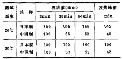 中,日兩種水泥的化學(xué)組成及礦物組成相似,但硬化特性差別較大,原因是這兩種水泥中添加的外加劑不同,因此釆用國產(chǎn)水泥的最大要點就是要尋求一種單一的或組合的外加劑,這種外加劑應(yīng)具有減水、緩凝、 高強等幾項功能。
