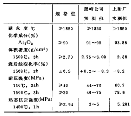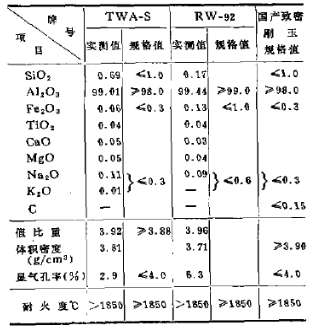 日本黑崎公司配制剛玉質(zhì)澆注料,采用日本研磨的TWA-S或采用日本昭和電工的RW-92致密電熔剛玉為骨料,這兩種剛玉的技術(shù)指標(biāo)列于表1。
