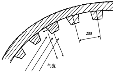 為緩沖帶細熟料顆粒的高速三次風氣流對彎頭內襯的沖刷力,將內襯設計成圖1的折疊式樣,從而使氣流頻繁轉向,沖刷力由強變弱。