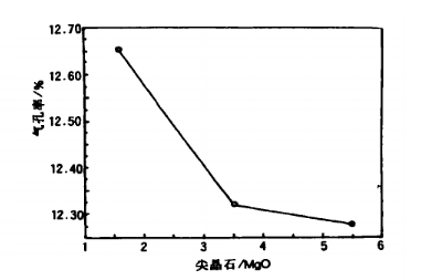 圖2 尖晶石/ZrO2對氣孔率的影響