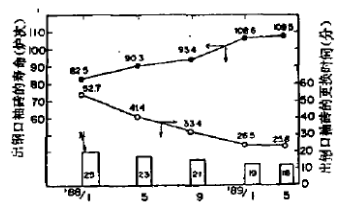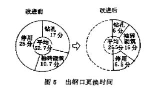 由于改變了袖磚的固定材枓,更換時間由原來的平均52.7分減少到26.5分,如圖4 所示,更換時同比以往更為集中。其結果見5。
