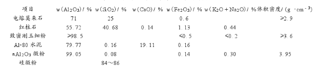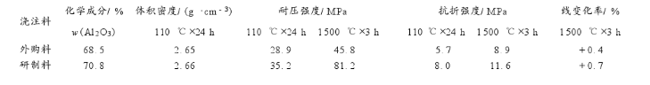 表2澆注料理化性能