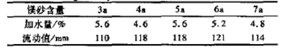 2.1 鎂砂細粉含量對鋁鎂質澆注料流動性的影響