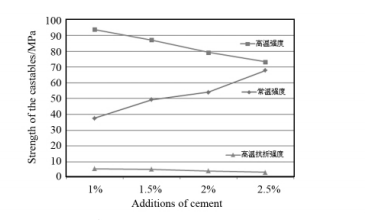 3.2 水泥加入量對澆注料強(qiáng)度的影響