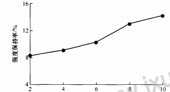 圖5示出了水泥加入量對1560℃燒后試樣抗熱震性的影響。