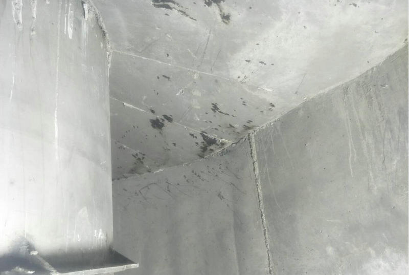 施工后的烘爐過程也是在賣家技術指導下進行了烘爐,烘爐周期在10天半,頭三天在100℃以內其中第一天溫度在30℃左右,第二天在60℃左右,第三天在80℃左右,最高烘爐溫度在550℃,經過烘爐后的耐磨澆注料出現(xiàn)了大部分部位的表面炸裂并帶有孔洞及長裂紋的情況以下是烘爐后所拍攝照片。后經我公司分析問題的原因在于以下幾方面,以警后患。