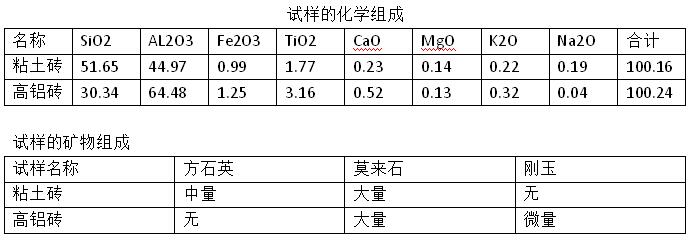 本工作所采用的高鋁磚和粘土磚的試樣,其礦物組成,根據(jù)前面所列成分表,主要為莫來石:粘土磚中還有方石英存在,而在高鋁磚中則由微量剛玉晶體。此外,除鐵鈦等尚可能形成少量晶體之外,其余雜質(zhì)均應(yīng)與SiO2和AL2O3形成玻璃物質(zhì)。其玻璃態(tài)物質(zhì)也以含SiO2為主。
