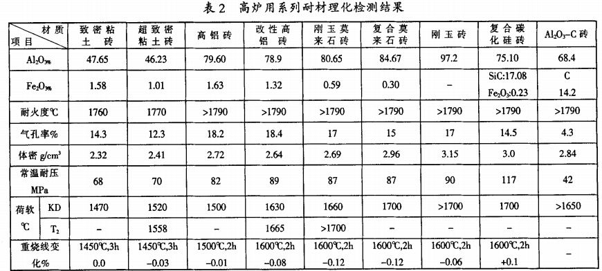 選用生產的高爐用耐材系列的九種材質進行實驗。其理化指標測量結果見表2
