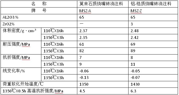 蓄熱式加熱爐用燒嘴磚原材料的選擇較為關鍵。骨料應選擇煅燒充分的二級高鋁熟料、莫來石等原料,一般不應選擇熱膨脹系數較大的剛玉原料。細粉部分應選擇剛玉細粉、氧化鋁微 粉、二氧化硅微粉、鋯英砂細粉等,采用Secar71水泥和ρ—AL2O3復合結合。表1為燒嘴 磚主要的理化指標。