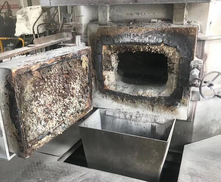鋁熔化爐作為鋁制品加工行業的主要設備,從熔化容量上分為多種型號,500Kg/h屬于小型鋁熔化爐。內部砌筑不同材質的耐火材料,投料豎井采用耐火澆注料,爐膛內部砌筑陶瓷纖維毯及高鋁磚。此次需要重新砌筑一方面是因為該鋁熔化爐已經使用超過3年,內襯耐火材料已過終限。第二方面主要為了分析高鋁磚在內部侵蝕的原因,結果表明鋁液對耐火材料的侵蝕其實就是鋁液與耐火材料中各礦物元素互相侵蝕與滲透的結果,總結了鋁熔化爐運行中出現的問題和改進措施以供參考。