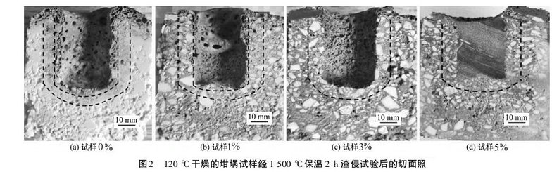 2、金屬鉻添加量對(duì)試樣抗渣侵蝕性能的影響