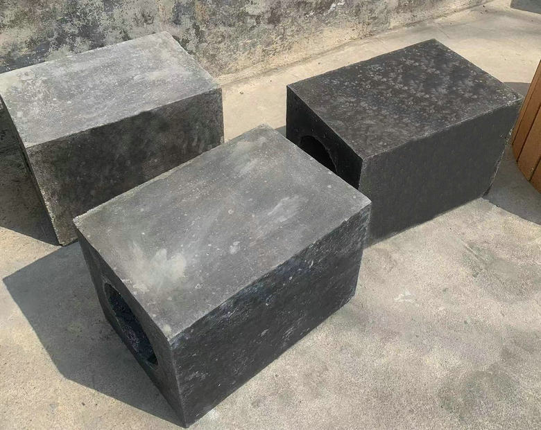 (4)澆注后過24h,開始脫模。脫模的順序依次先從內部喇叭口的芯子開始,然后再將外面側板、底板卸掉,最后呈現出一塊工藝完整的預制燒嘴磚,整體測量了尺寸誤差在±1mm內,說明鐵模具有效的控制了尺寸的精度。外觀顏色整體是黑色,發亮,最后自然風干24h后進入了低溫烘干窯。