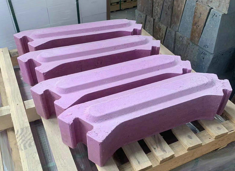 鉻剛玉磚因具有很高的耐壓強度、抗折強度、抗酸堿侵蝕性以及金屬氧化物的化學侵蝕性能,被廣泛應用于建材工業玻璃窯蓄熱室及墻體、鉛鋅有色冶煉爐,但它也有個不利的弱點是抗熱震性能較差,對于開停比較頻繁的間歇是冶煉爐不太適用。要解決這個問題,就必須在工藝配方中加入一定量的莫來石來改善抗熱震性能。莫來石因具有良好的高溫力學、高溫熱學性能、熱膨脹均勻、抗熱震性能好、抗化學侵蝕性優良等特點,被廣泛應用于剛玉磚及鋯剛玉復合磚中以提高制品的抗熱震性能。