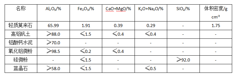 (2) 不同體積密度的輕質骨料對澆注料的指標有較大的影響,使用何種牌號的原料應慎重選擇。